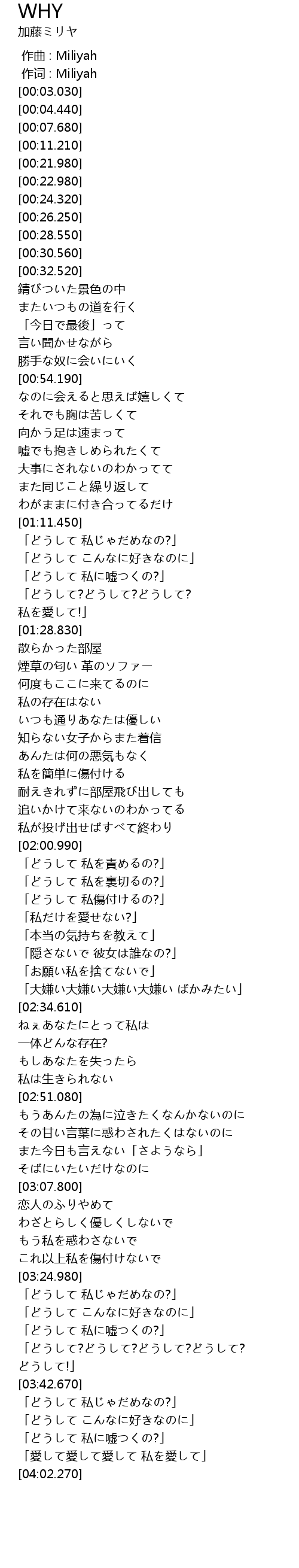 | [03:51.100] | 「どうして 私に嘘つくの?」 |