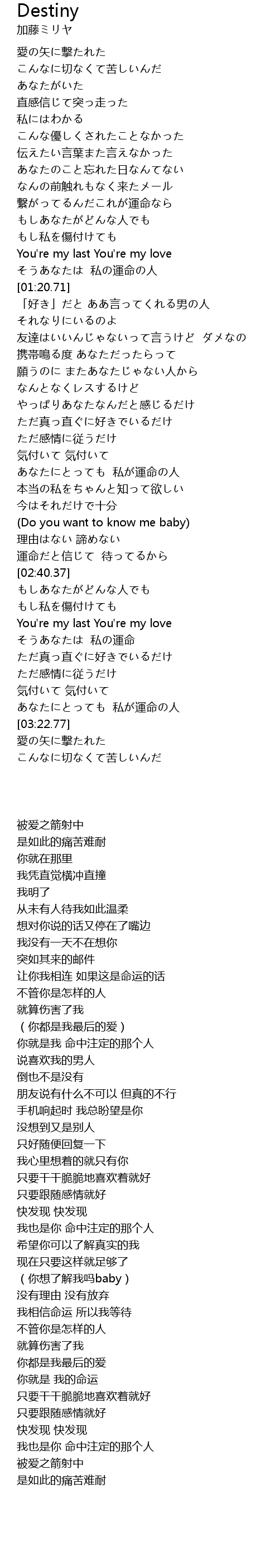 | [02:53.97] | そうあなたは 私の運命 |