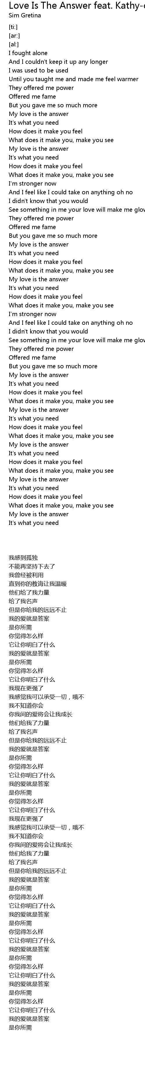 Love Is The Answer feat. Kathy-chan ★ Love Is The Answer feat. Kathychan Lyrics