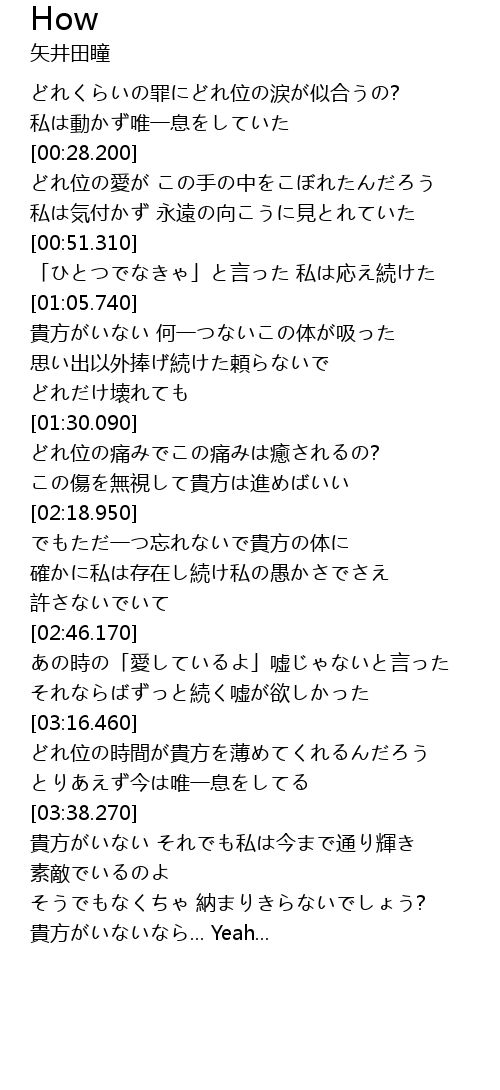 | [00:06.700] | どれくらいの罪にどれ位の涙が似合うの? |