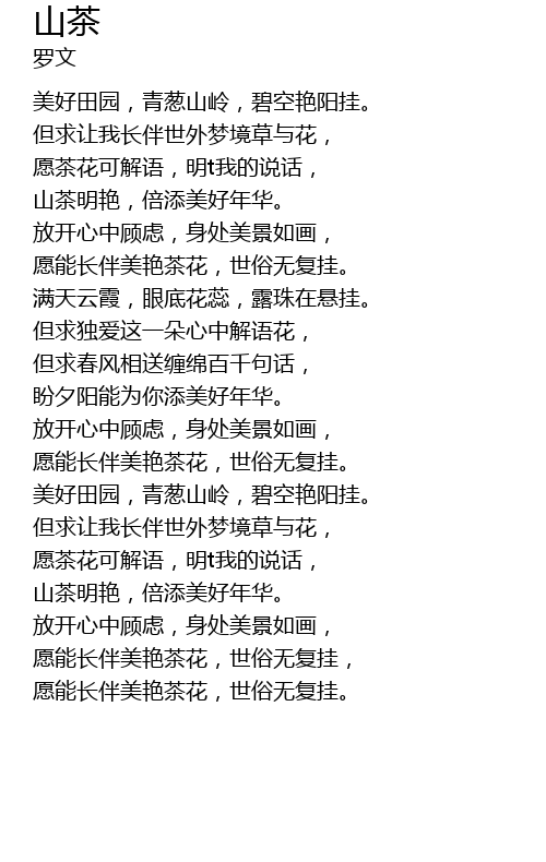 | [02:33.239] | 愿能长伴美艳茶花,世俗无复挂。 |