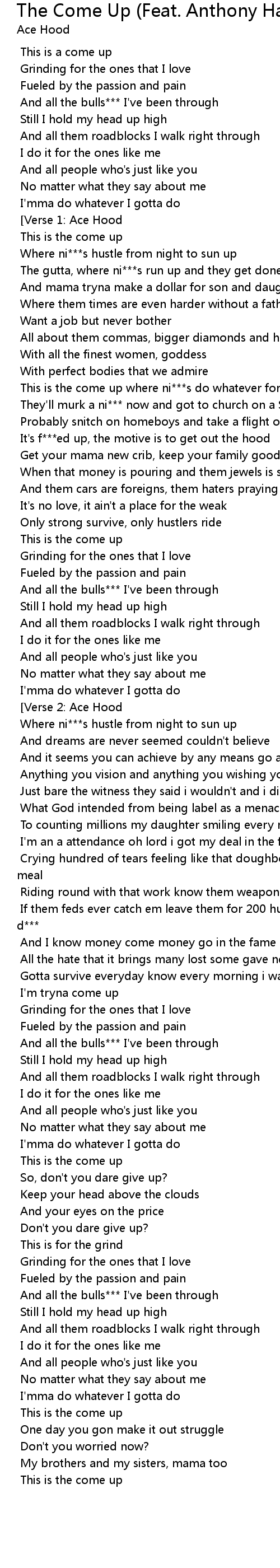 The Come Up (Feat. Anthony Hamilton) Lyrics