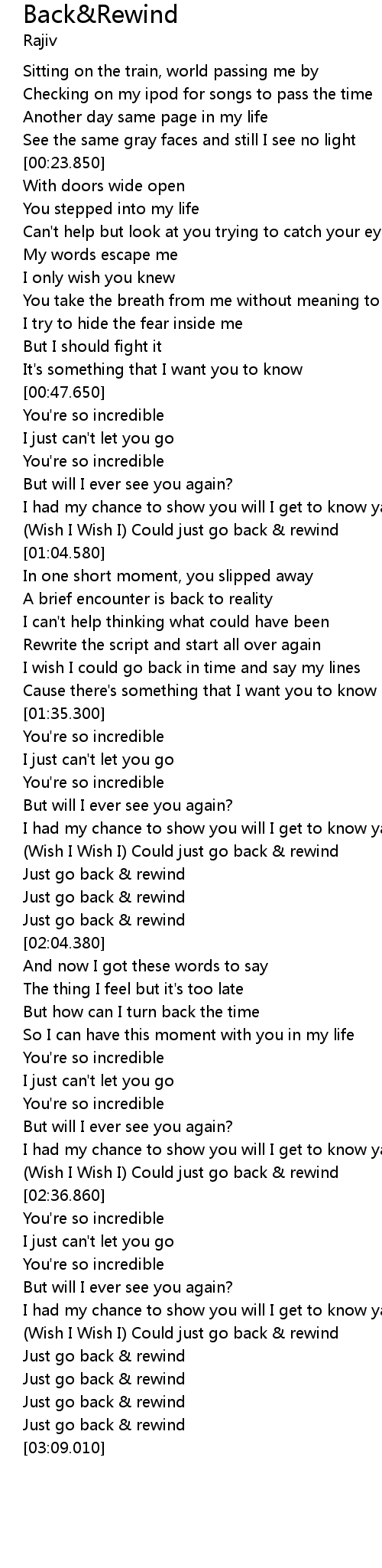 | [02:49.780] | (Wish I Wish I) Could just go back & rewind |