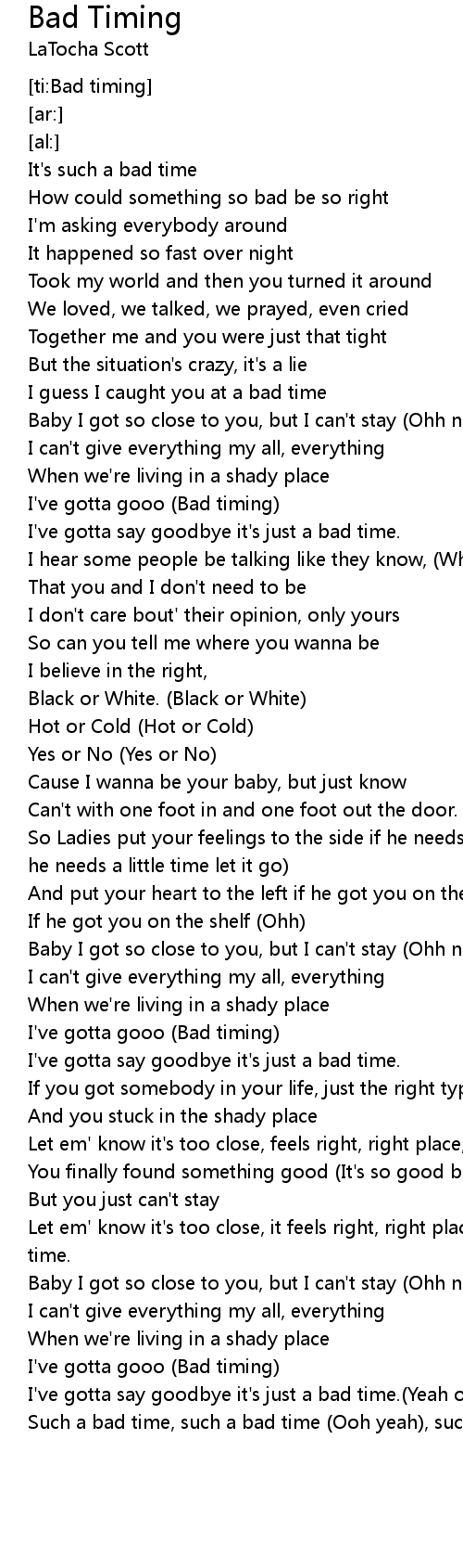 Such a bad time, such a bad time (Ooh yeah), such a bad time. |