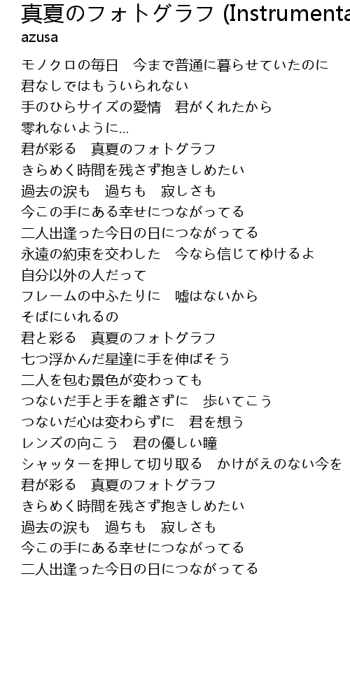 | [02:22.07] | 君と彩る 真夏のフォトグラフ |