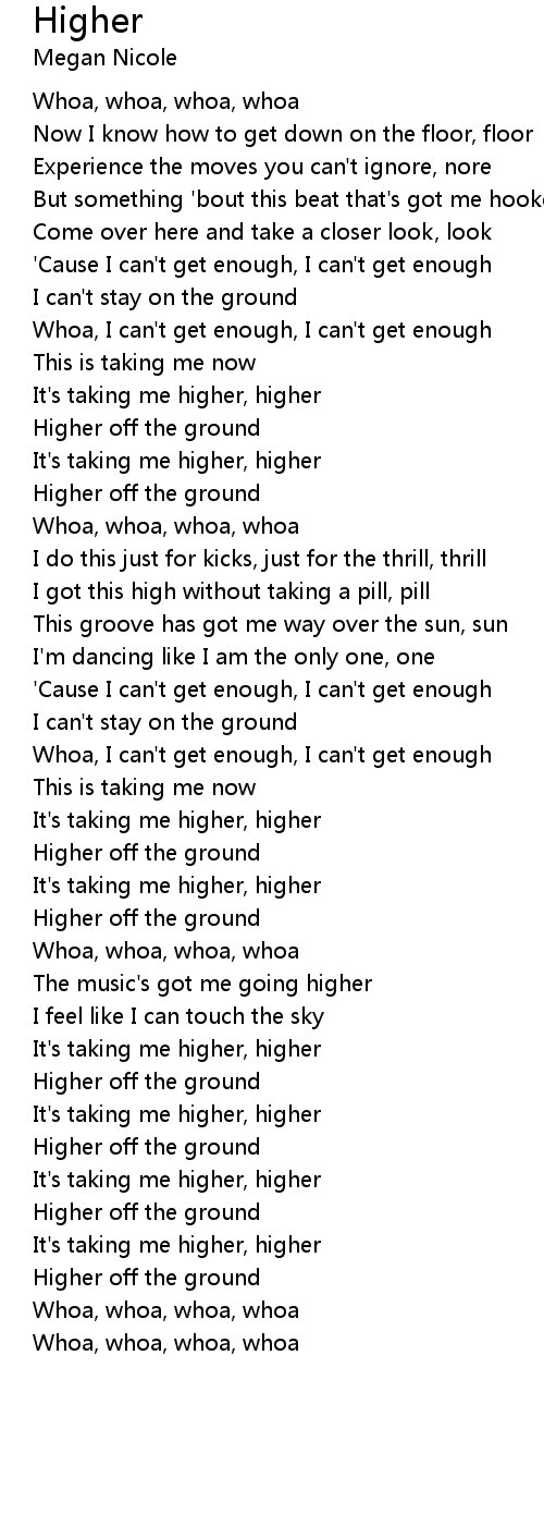 It's taking me higher, higher |