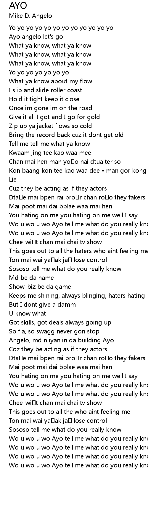 | Wo u wo u wo Ayo tell me what do you really know | |