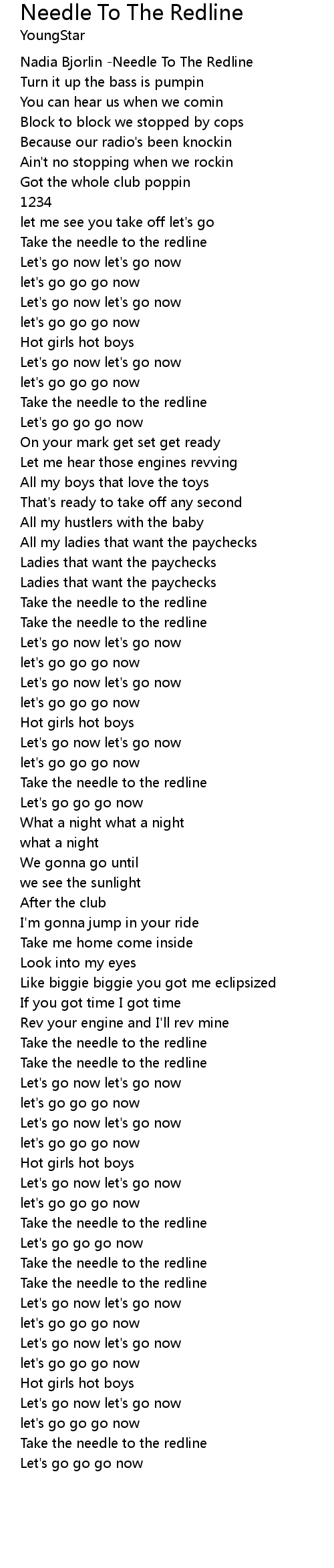 | [00:00.678] | Nadia Bjorlin -Needle To The Redline |