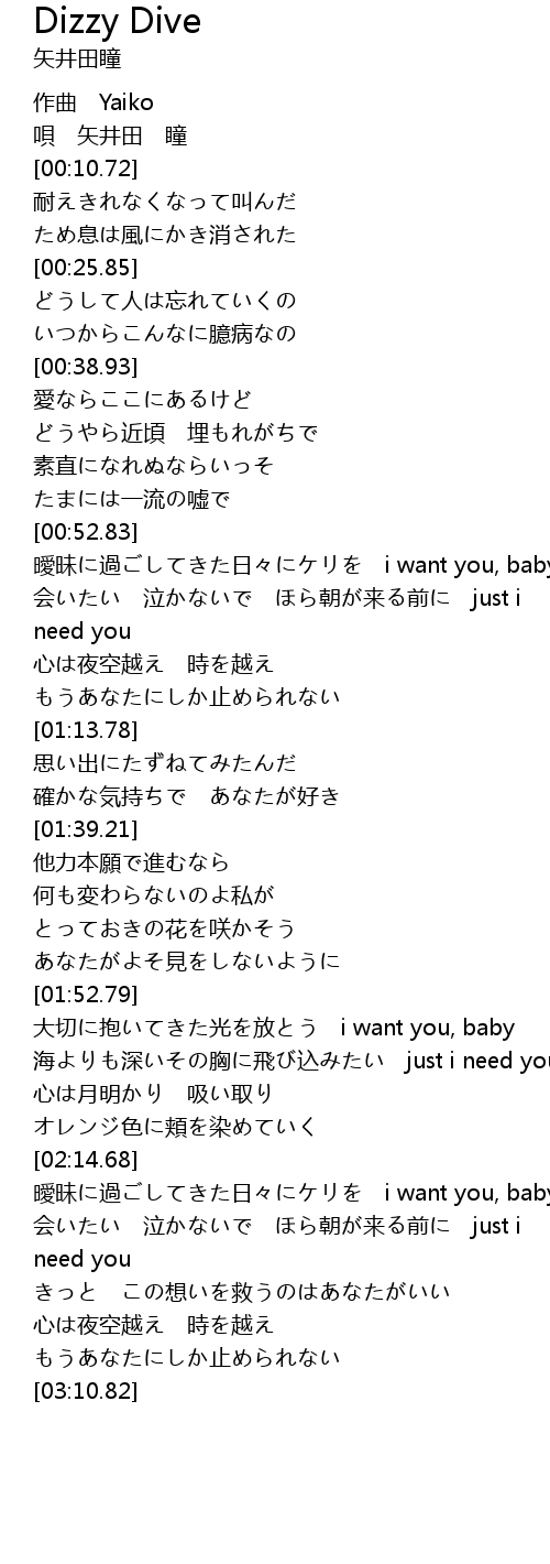 | [01:59.37] | 海よりも深いその胸に飛び込みたい just i need you |