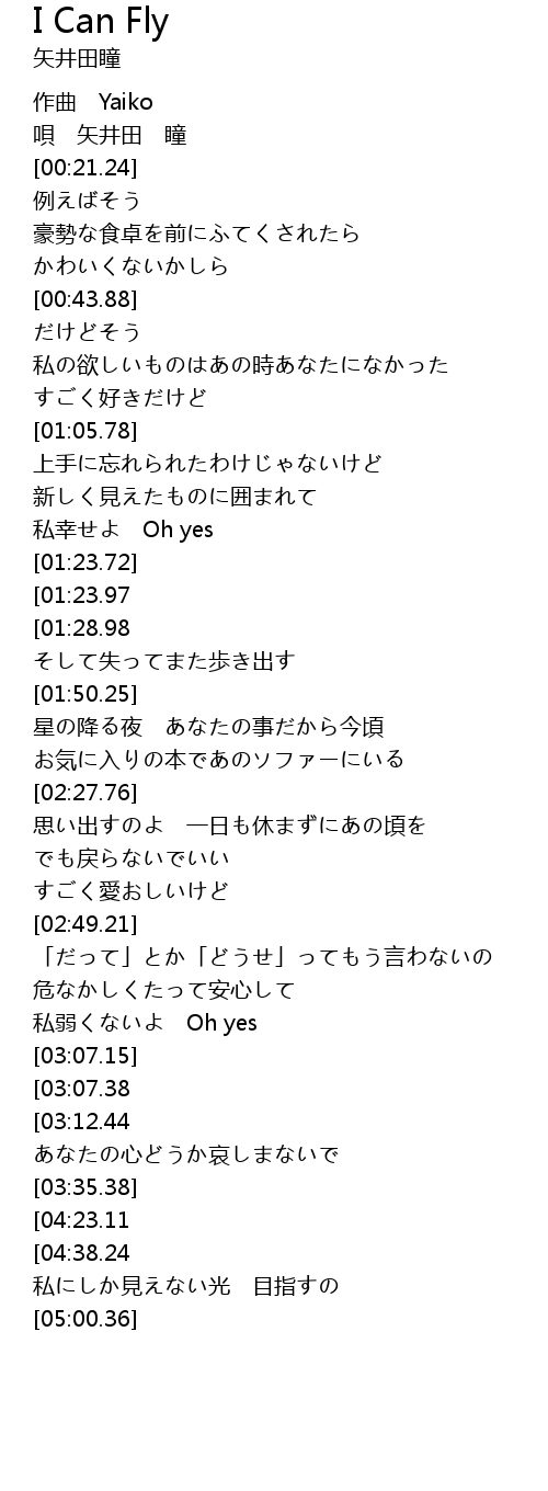 | [04:43.30][04:23.11][04:13.01] | i can fly... |