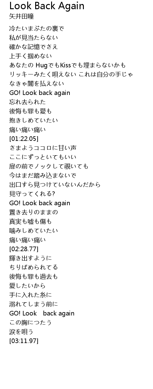 | [03:00.13] | GO! Look back again |