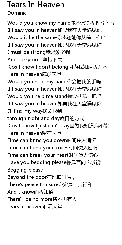 | Tears in heaven lei sa tian tang |