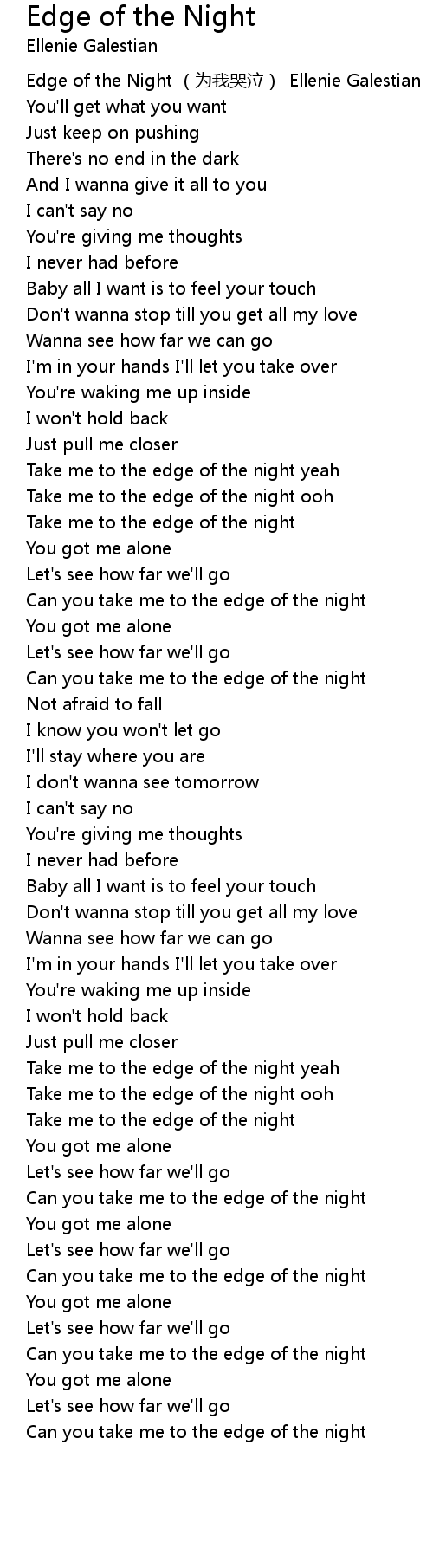| [00:00.00] | Edge of the Night (为我哭泣)-Ellenie Galestian |