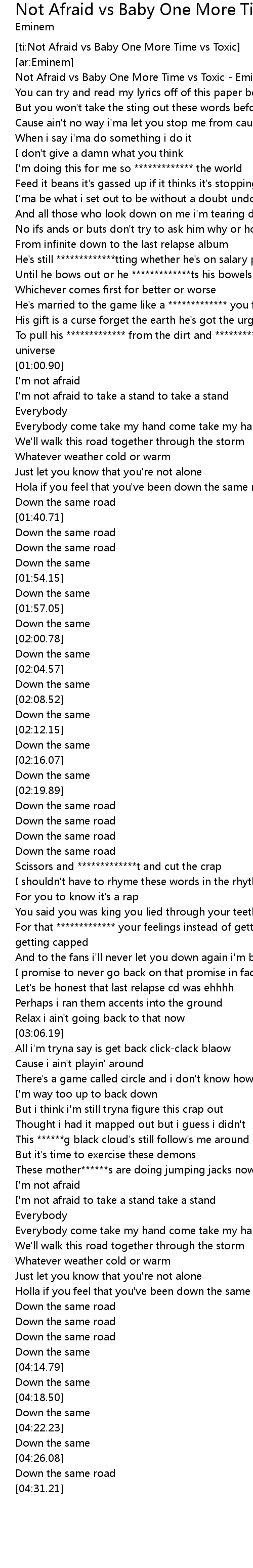 | [ti:Not Afraid vs Baby One More Time vs Toxic] | |