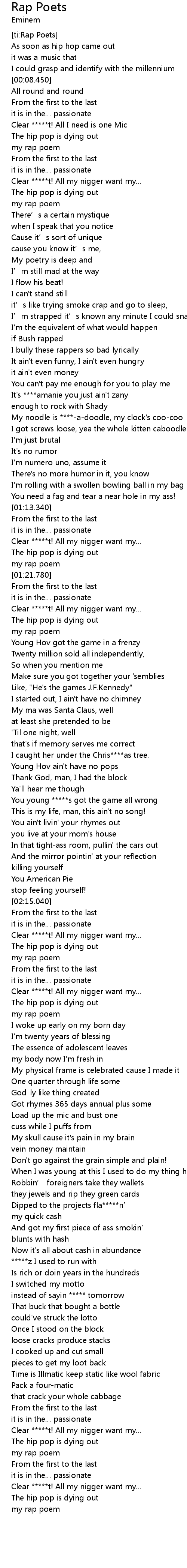 | [02:18.750] | Clear *****t! All my nigger want my… |