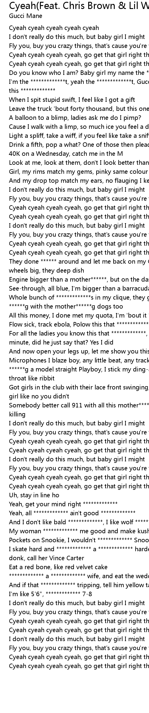 I'm the *************t, yeah the *************t, Gucci Mane off in this ************* |
