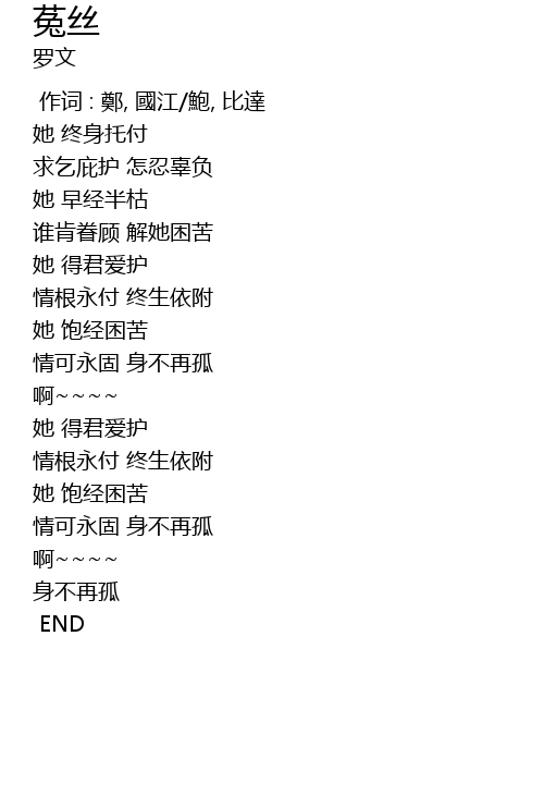 | [00:44.17] | 谁肯眷顾 解她困苦 |