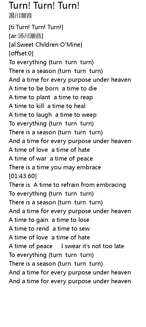 | [02:27.93] | A time of peace I swear it' s not too late |