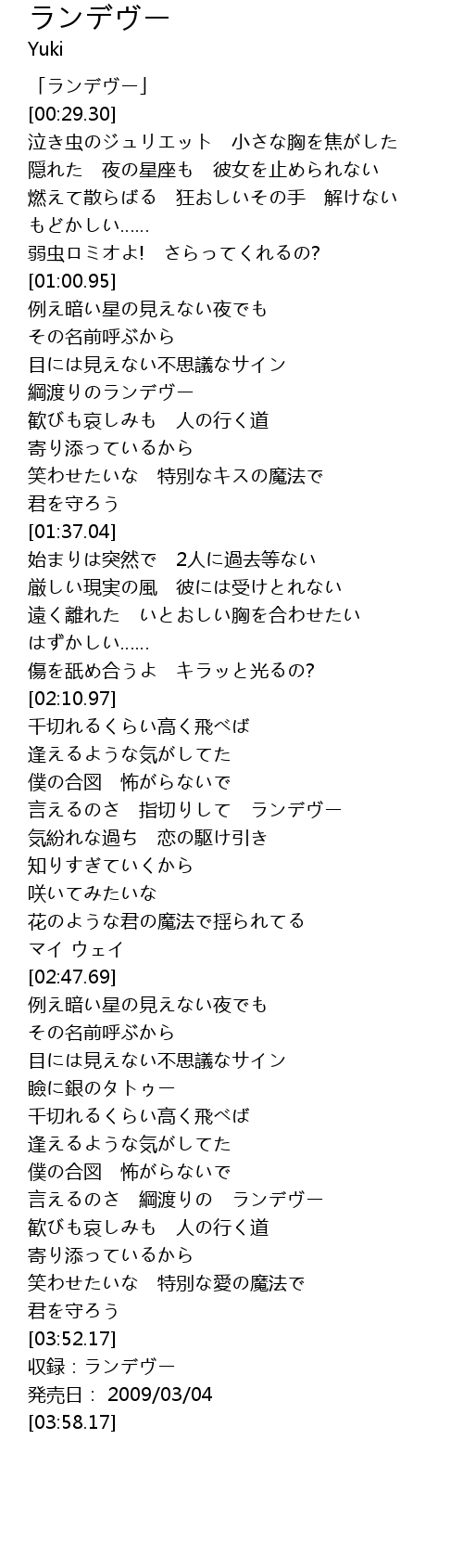 | [00:01.30] | 「ランデヴー」 |