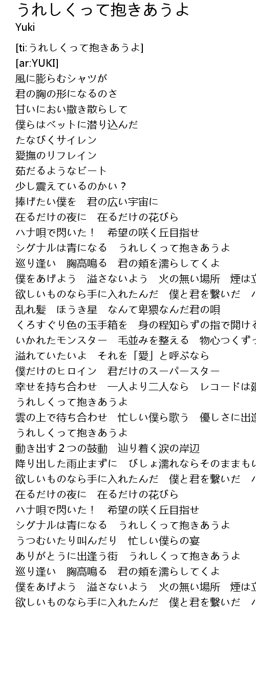 | [04:33.79] | シグナルは青になる うれしくって抱きあうよ |