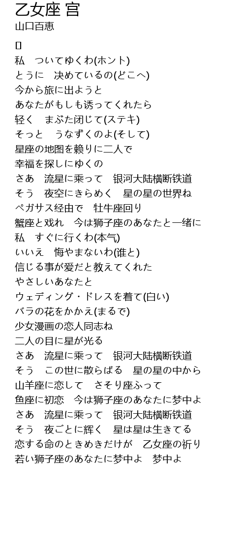 | 恋する命のときめきだけが 乙女座の祈り | |