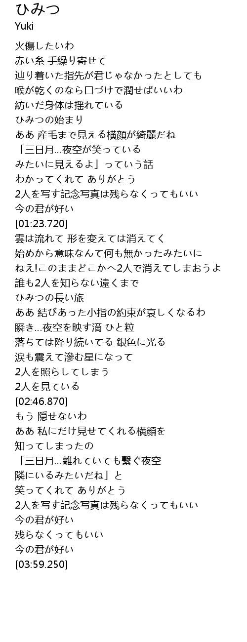 | [02:04.000] | ああ 結びあった小指の約束が哀しくなるわ |