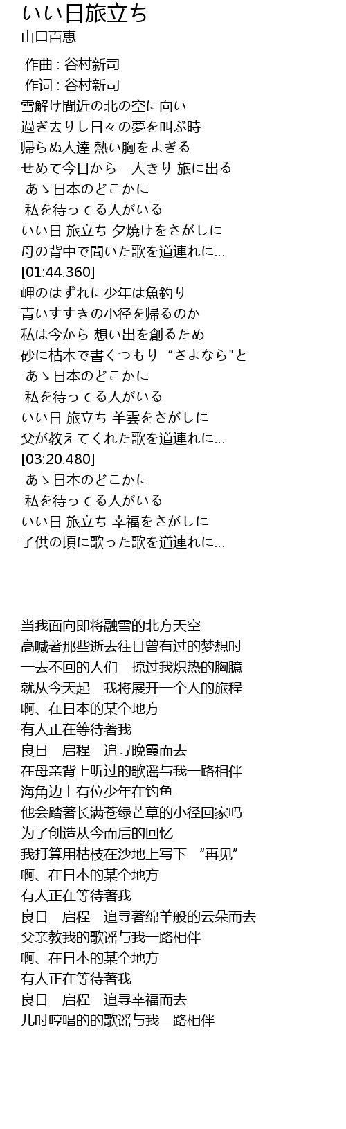 | [03:39.730] | いい日 旅立ち 幸福をさがしに |