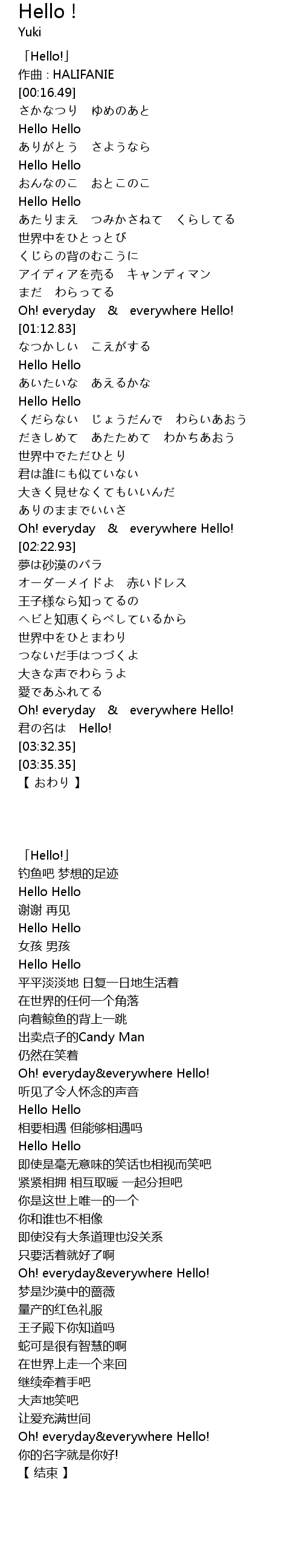 | [02:16.39] | Oh! everyday & everywhere Hello! |