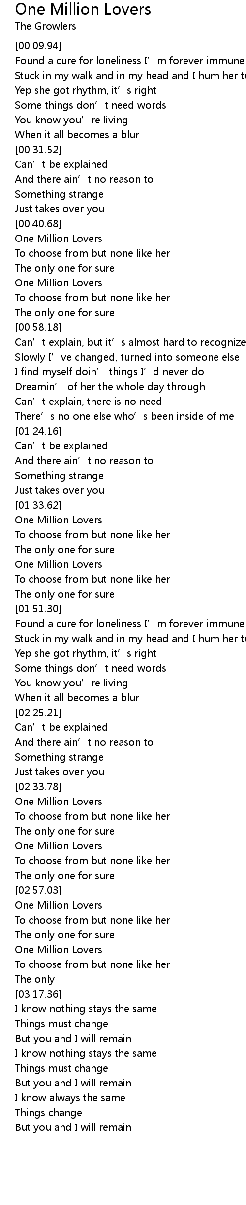 | [00:13.79] | Found a cure for loneliness I' m forever immune |
