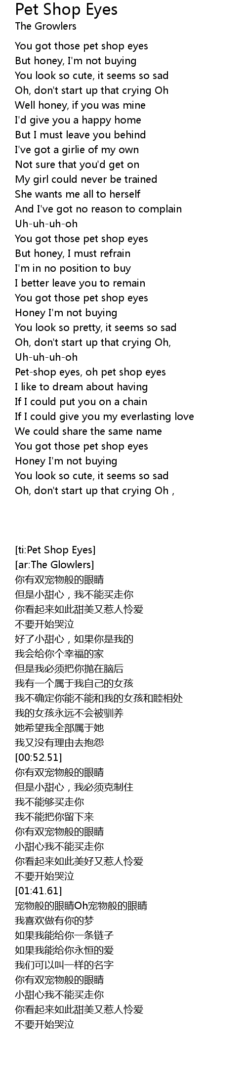 | [02:12.45] | Petshop eyes, oh pet shop eyes |