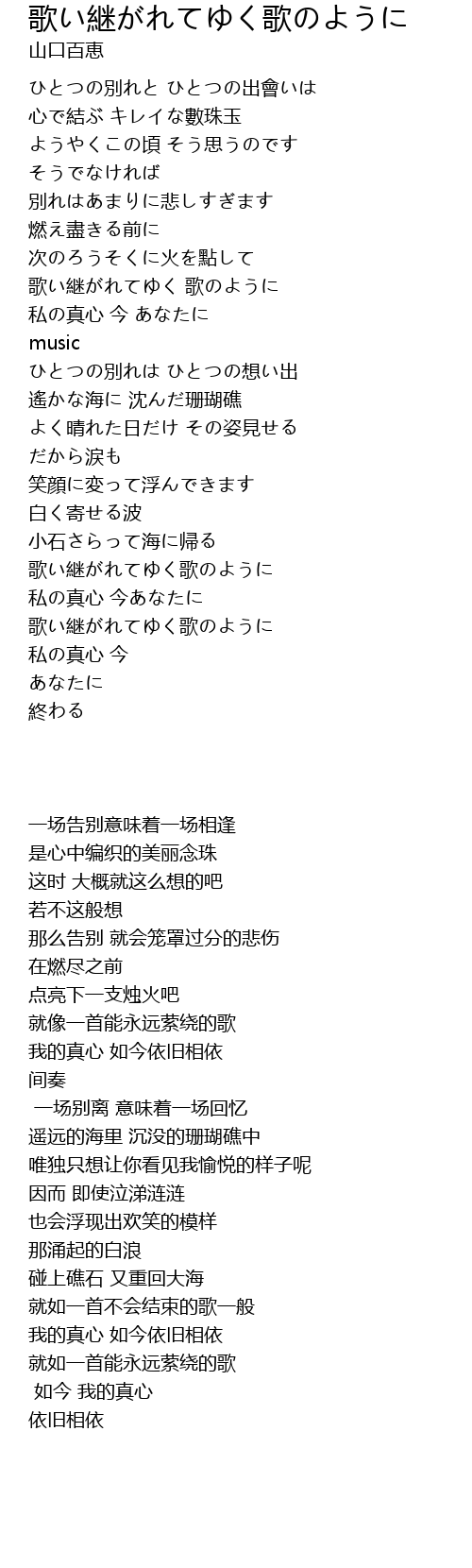 | [03:14.59] | 歌い継がれてゆく歌のように |
