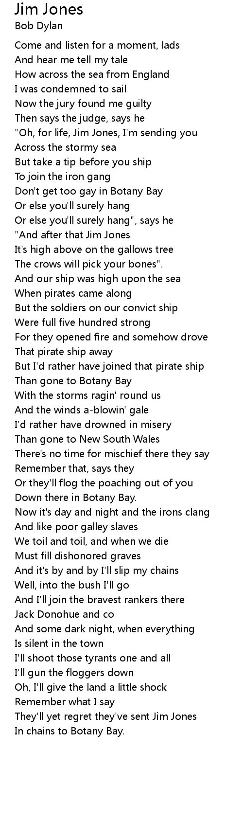 "Oh, for life, Jim Jones, I'm sending you |