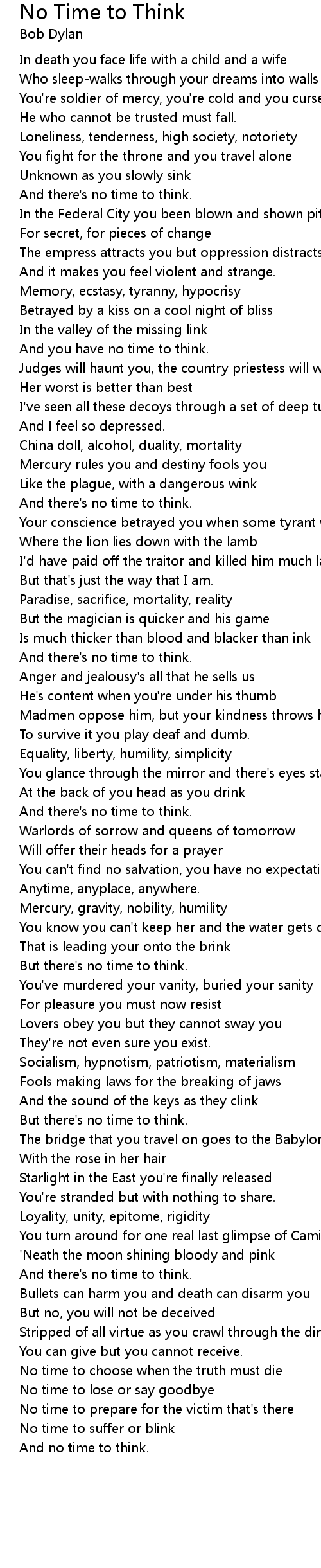 And no time to think. |