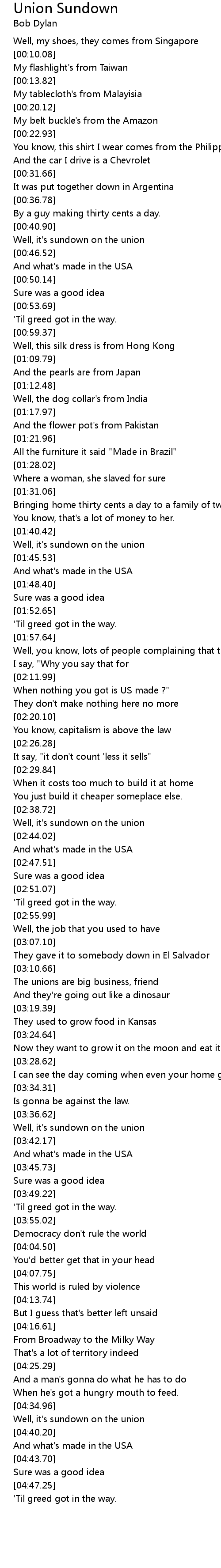 Well, it's sundown on the union |