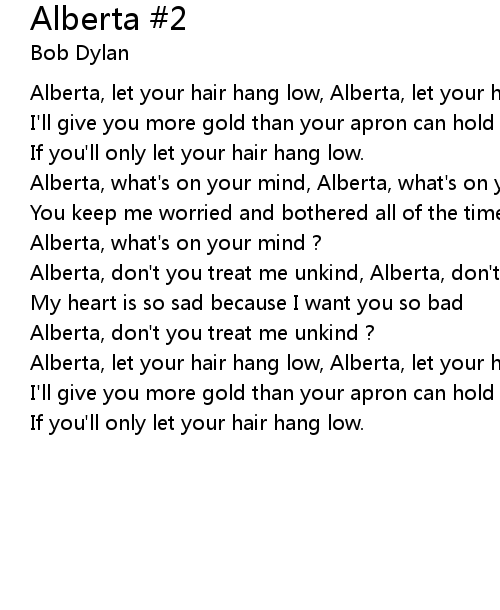 Alberta, let your hair hang low, Alberta, let your hair hang low, |