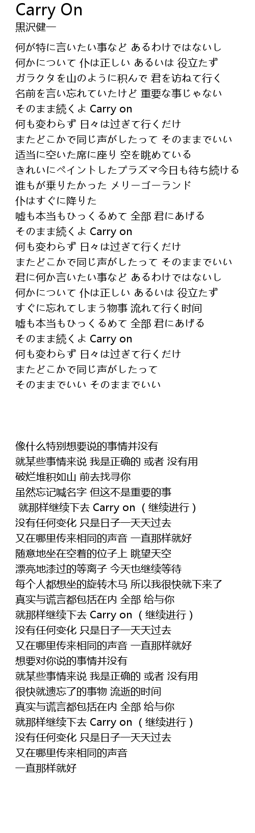| [00:43.62] | そのまま続くよ Carry on |