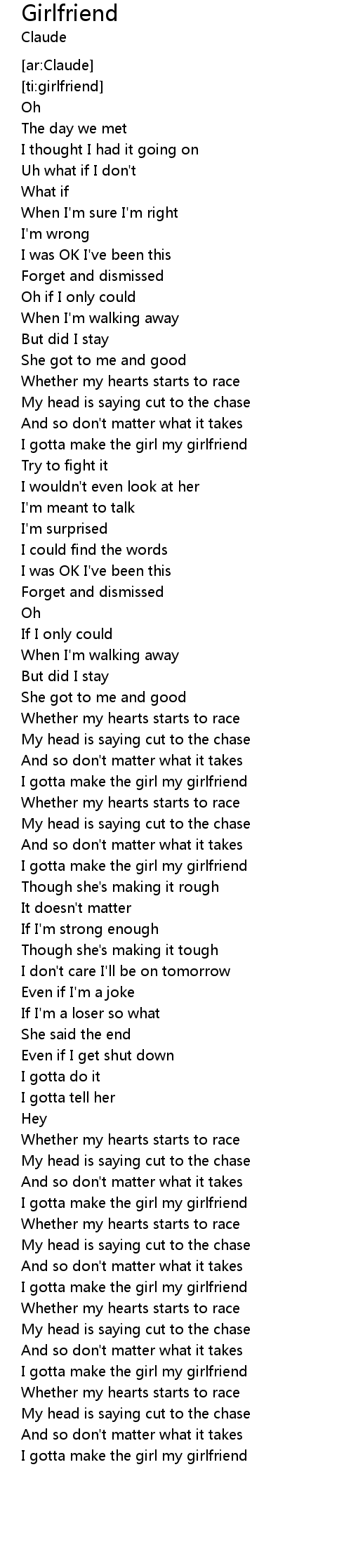 | [03:17.39] | I gotta make the girl my girlfriend |