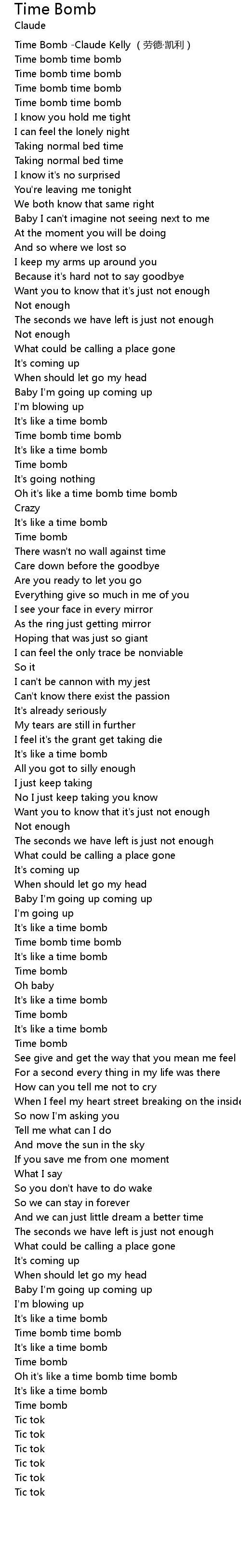 | [00:00.00] | Time Bomb -Claude Kelly (劳德·凯利) |