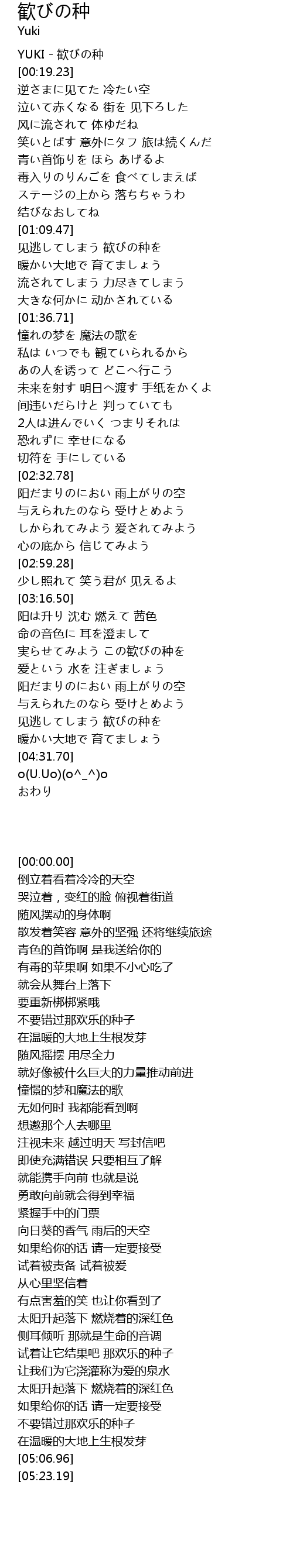| [03:53.54] | 実らせてみよう この歓びの种を |