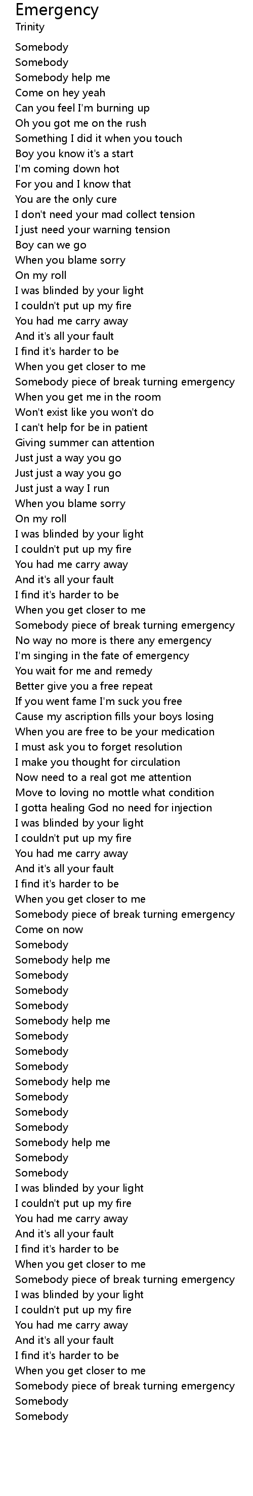 | [01:06.250] | Somebody piece of break turning emergency |