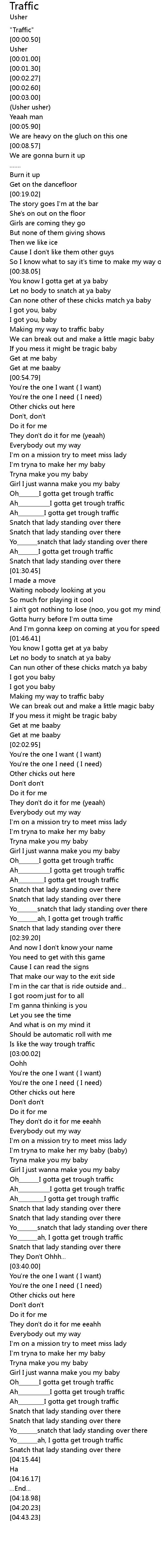 | [02:25.17] | Ah___________I gotta get trough traffic |