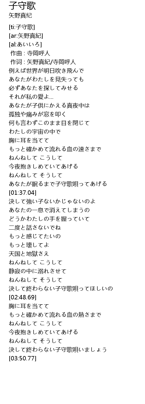 | [02:37.82] | 決して終わらない子守歌唄ってほしいの |