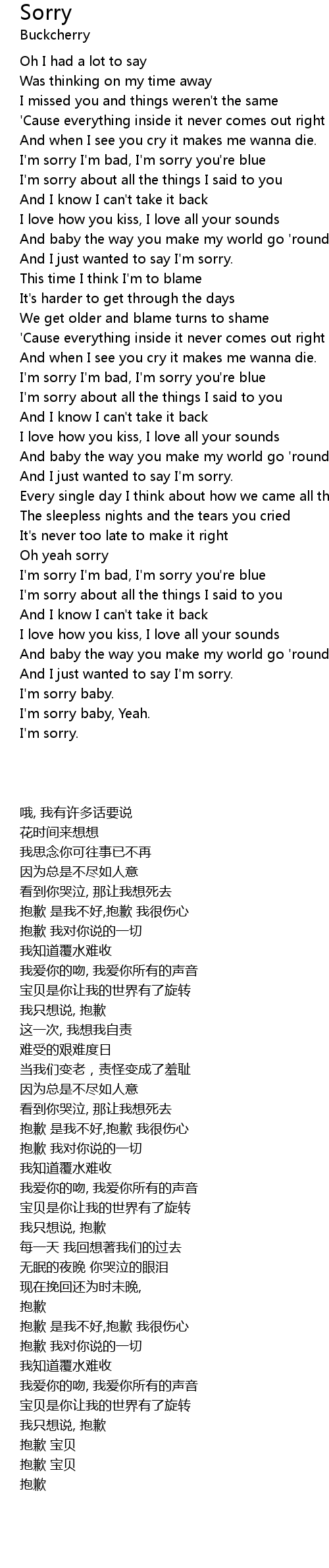 I'm sorry baby, Yeah. |