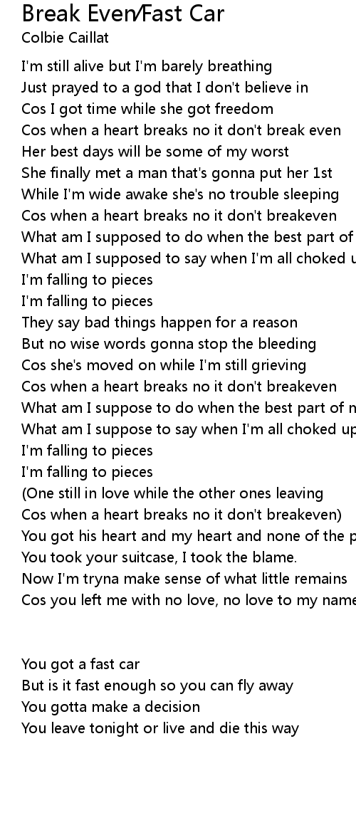 Cos when a heart breaks no it don't break even |