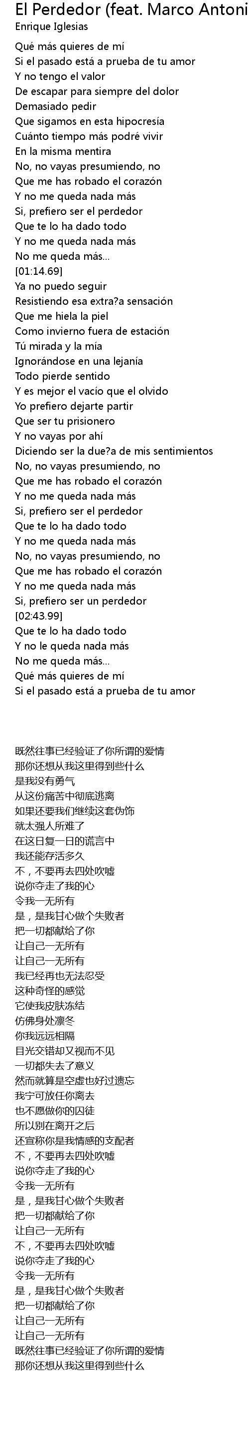 | [02:12.59] | Si, prefiero ser el perdedor |