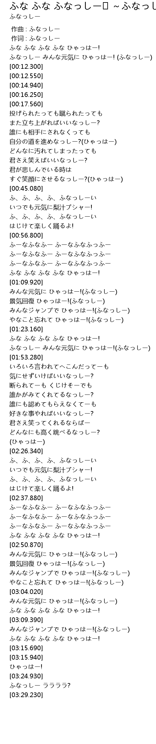 | [02:32.210] | ふ、ふ、ふ、ふ、ふなっしーい |