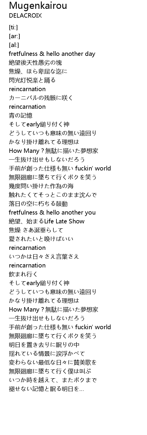 | [02:34.63] | 手前が創った仕様も無い fuckin' world |