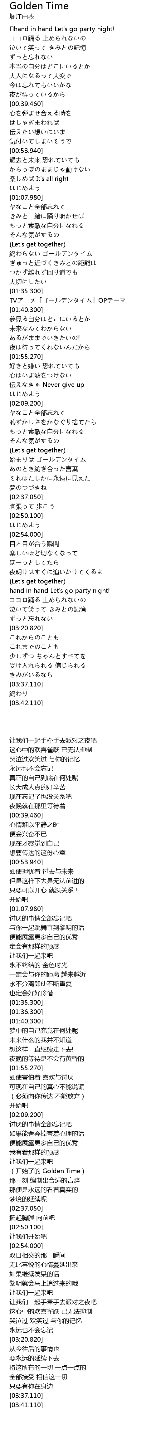 | [02:23.890] | 始まりは ゴールデンタイム |