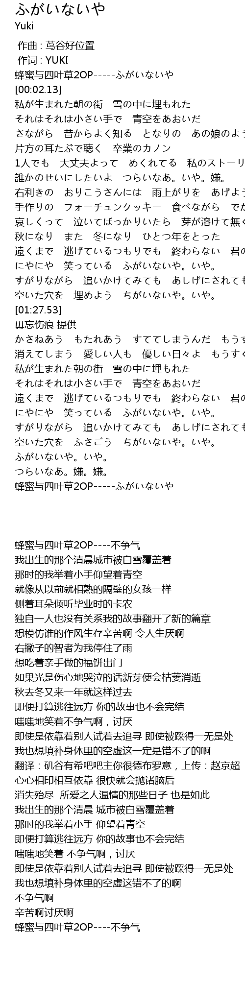 | [03:43.50] | 蜂蜜与四叶草2OP-----ふがいないや |