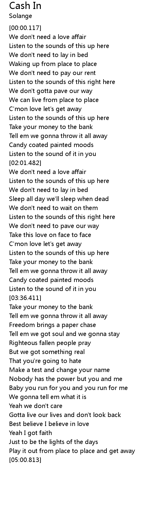 Cash In Lyrics